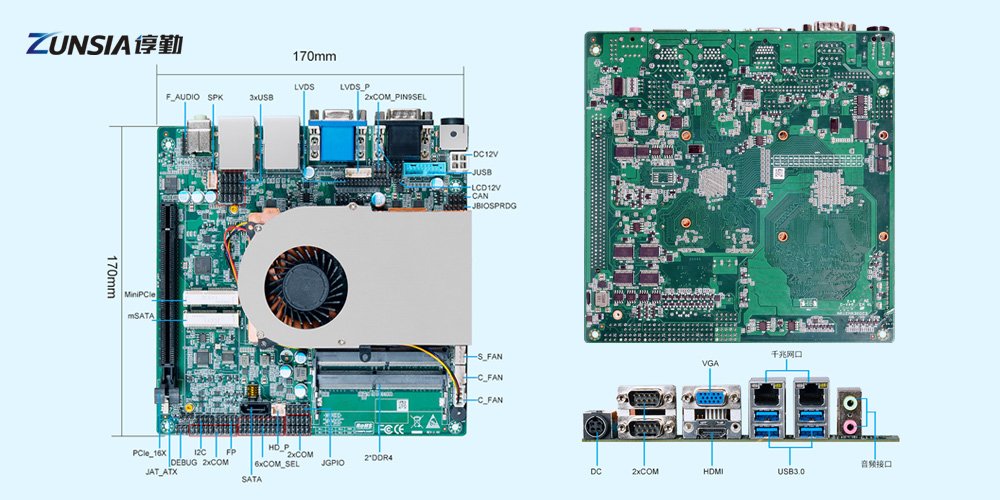 存儲方面有1個mSATA和1個SATA3.0接口,顯示方面有1個HDMI、1個VGA和1個LVDS/eDP(2選1)接口;豐富的工業(yè)接口,有PCIe X16、MiniPCIe、LAN、COM、GPIO、CAN等??梢赃B接各種電力設備,如傳感器、控制器、數(shù)據(jù)采集設備等,實現(xiàn)對電力設備的監(jiān)測與控制、存儲采集到的電力數(shù)據(jù),以便后續(xù)分析和處理。